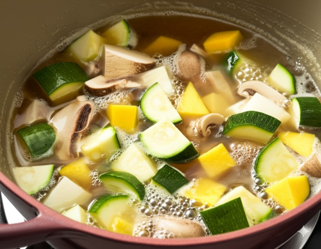 Tip: 단단한 채소부터 먼저 넣고 끓여야 재료들이 골고루 익고 국물 맛도 더 잘 우러납니다. 돼지고기를 넣을 때는 겉면이 익을 때까지 먼저 볶아서 넣어주면 잡내를 제거하고 감칠맛을 더할 수 있습니다.