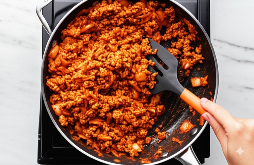 2단계: 돼지고기 또는 참치 볶기 (풍미 UP!)
