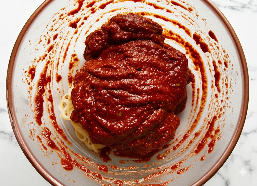비빔국수의 맛을 좌우하는 가장 중요한 단계! 백종원 레시피의 황금 비율로 맛있는 양념장을 만들어볼까요?