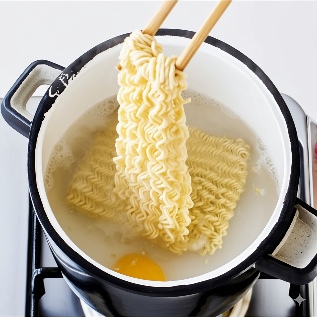 - 면발을 공기와 접촉시키세요! 면이 익기 시작하면 젓가락으로 면을 들어 올려 공기와 접촉시켜주세요. 이렇게 하면 면발이 더욱 쫄깃해집니다.